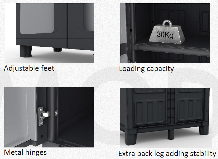 Built from durable resin/polypropylene, the XL Slim features strong metal hinges, a lockable door option for security (lock not included), and adjustable legs for stability on any surface. Its narrow profile is ideal for utility rooms, laundry areas, pantries, hallways, and more, making it easy to keep even the tightest corners organized.