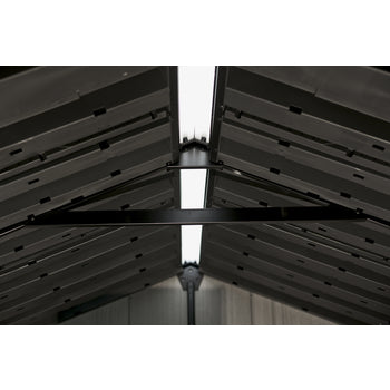 Style, accessibility and super rugged storage. The Oakland 757 shed is the durable and weather-resistant addition to any backyard, providing a generous storage solution with a heavy-duty floor, robust roof and double wall structure reinforced with steel. Its unique and easily paintable DUOTECH™ walls have an attractive worn wooden texture walls, a Victorian-style window, a skylight and double doors that provide accessibility.
