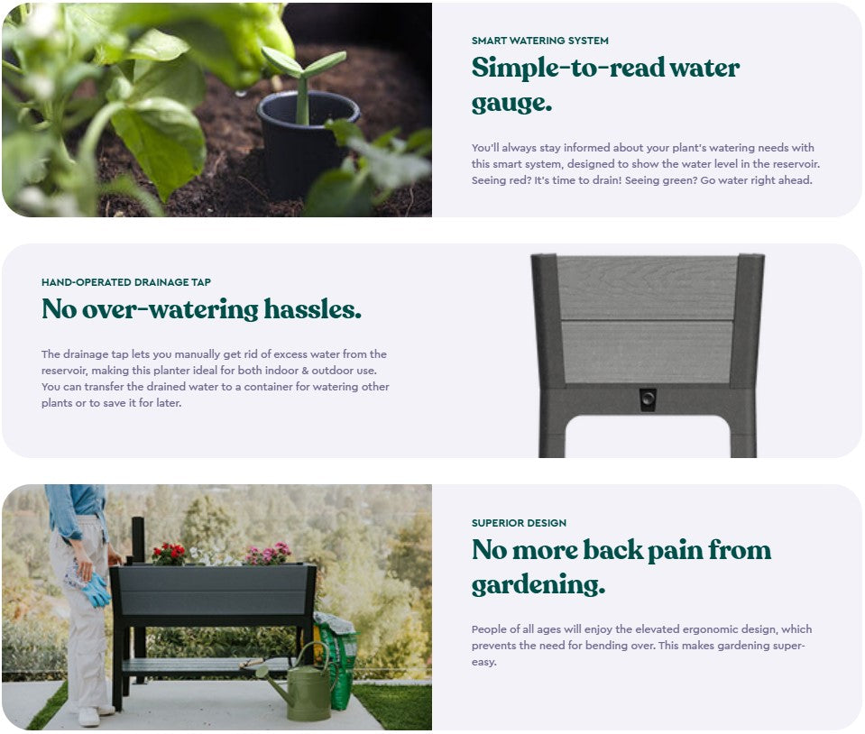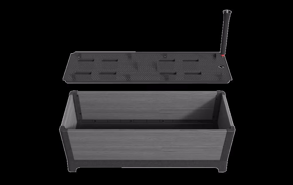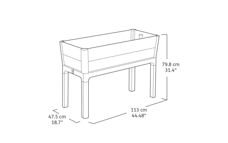 This garden bed has a modern look and is absolutely overflowing with useful features. It has 110 Liters of soil capacity as well as an innovative drainage and self-watering system so you can carefully monitor your plants' water intake.