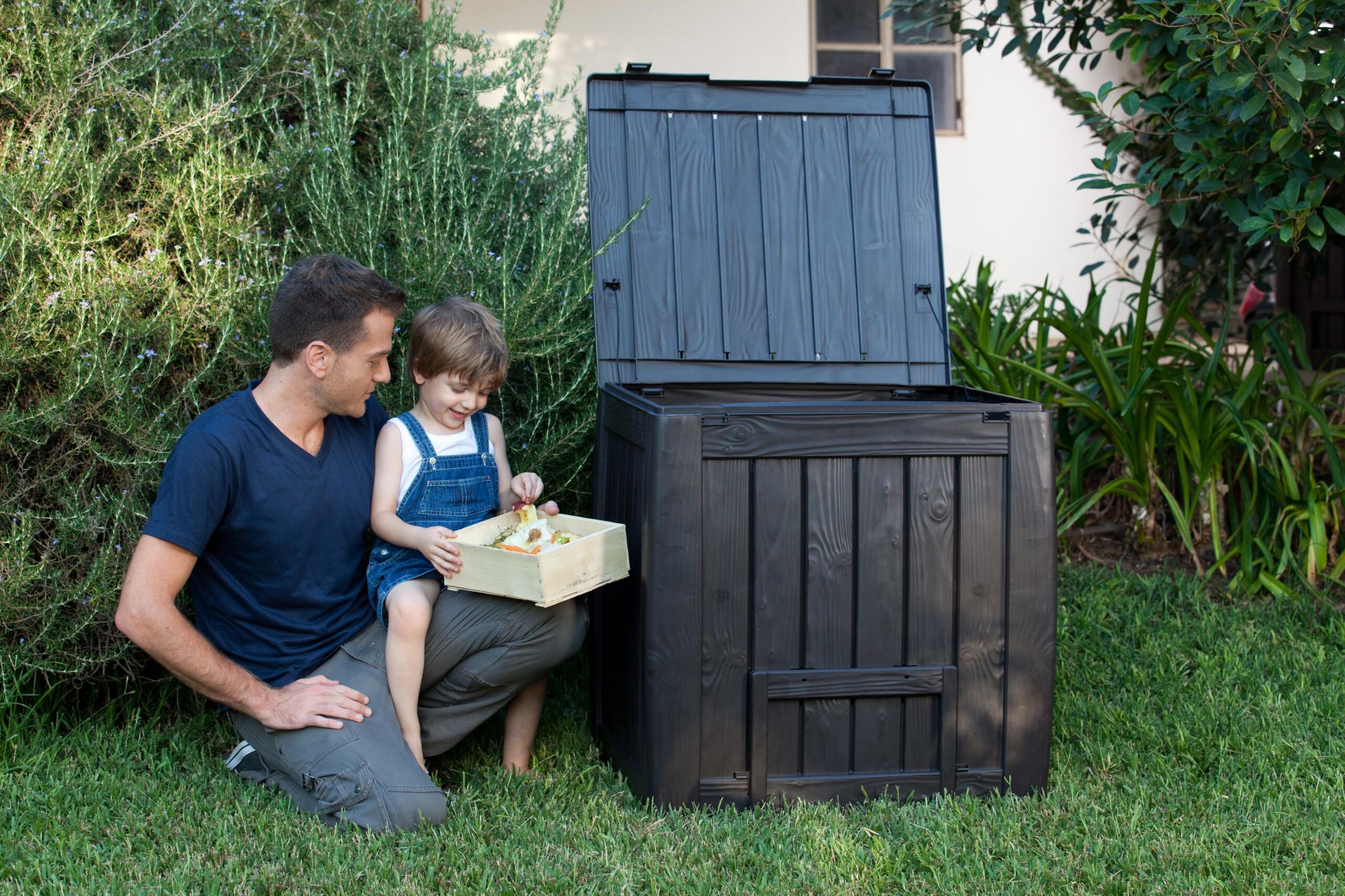 - It's made out of all weather-resistant resin with an appealing wood-look texture.