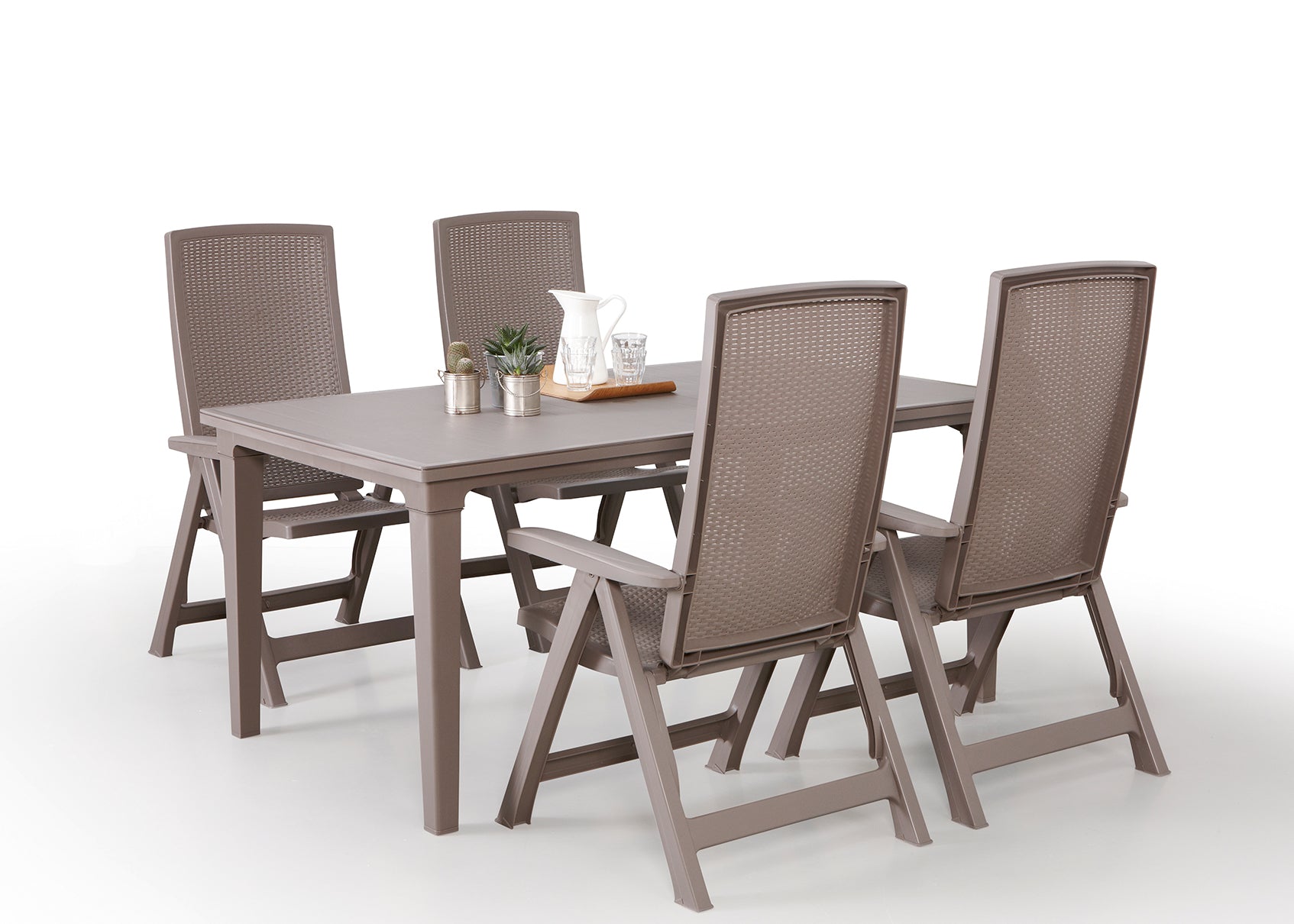 Featuring a slim, stylish silhouette and an elegant wood-look surface, the Futura blends contemporary flair with timeless appeal. Crafted from sustainably produced resin using 50% recycled materials, this table is an eco-conscious choice that’s as practical as it is beautiful.