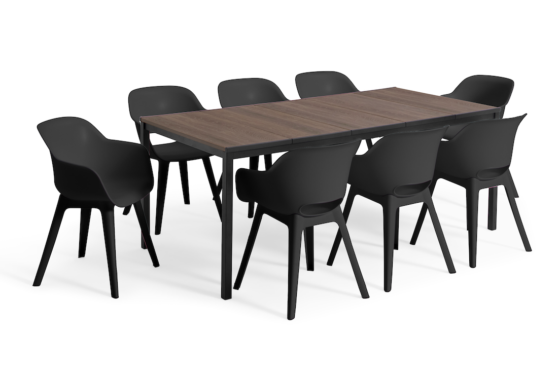 Enhance your outdoor dining experience with the Keter Porto table, measuring 200cm and seating up to 8 people. This elegant table adds warmth and sophistication to any setting and is available in various finishes.