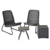 Suitable for use indoors or al fresco, this stylish yet durable Rio Patio Furniture Set includes 2 x low profile chairs, 1 Storage tabel, finished with a rattan design and sturdy metal legs for extra support.