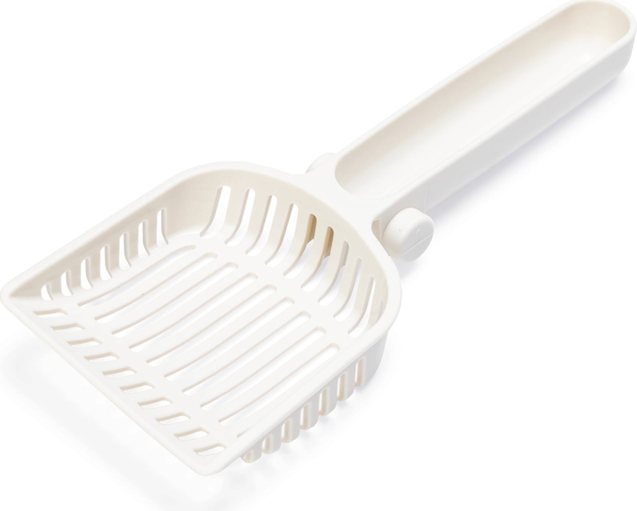 Additional features include an odour filter to keep smells contained, a front flap for easy access, and a bonus poop scoop for quick cleanup.