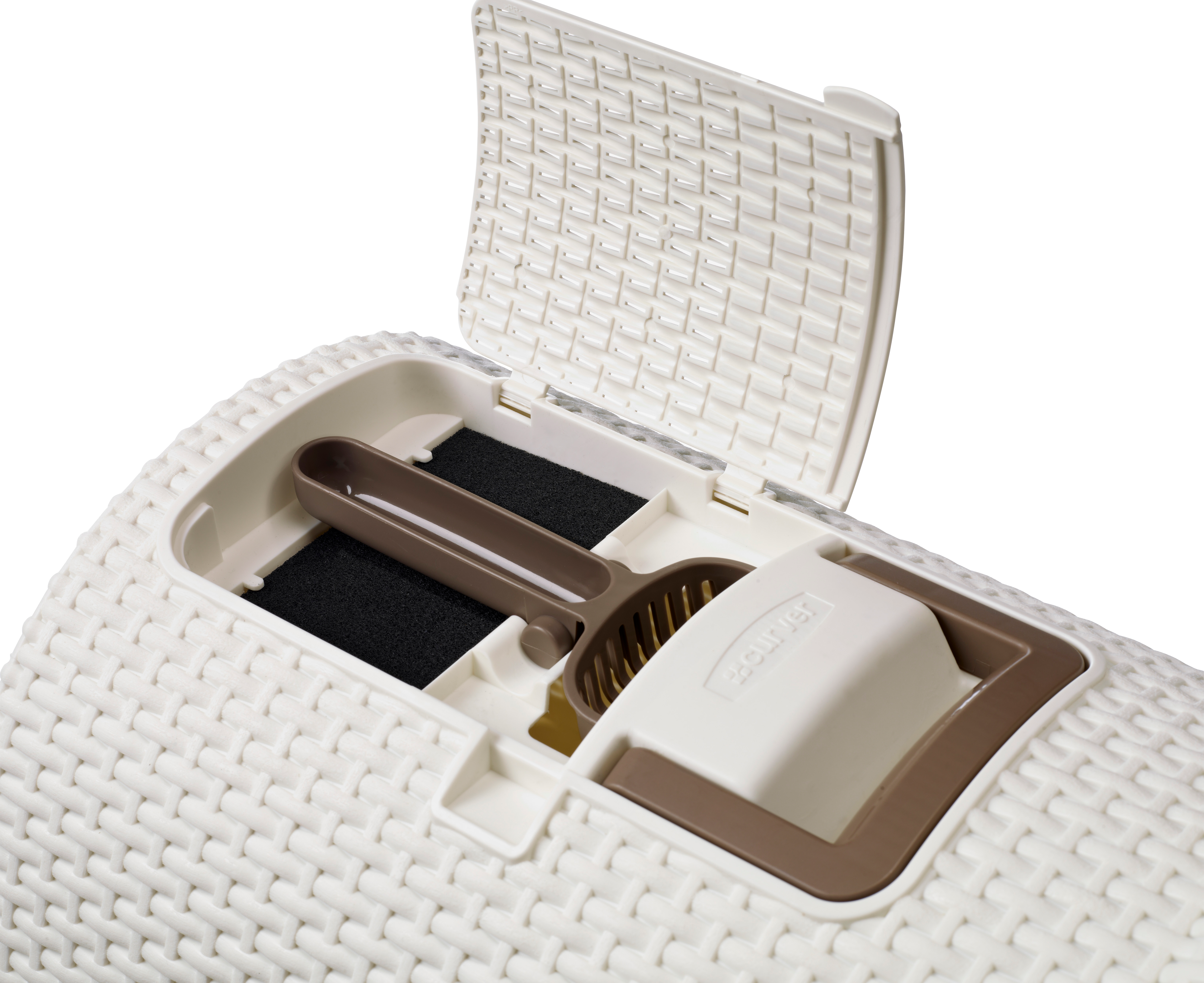 The Curver Cat Litter box boasts a gorgeous rattan-style construction designed to make it discreetly integrate into any area.