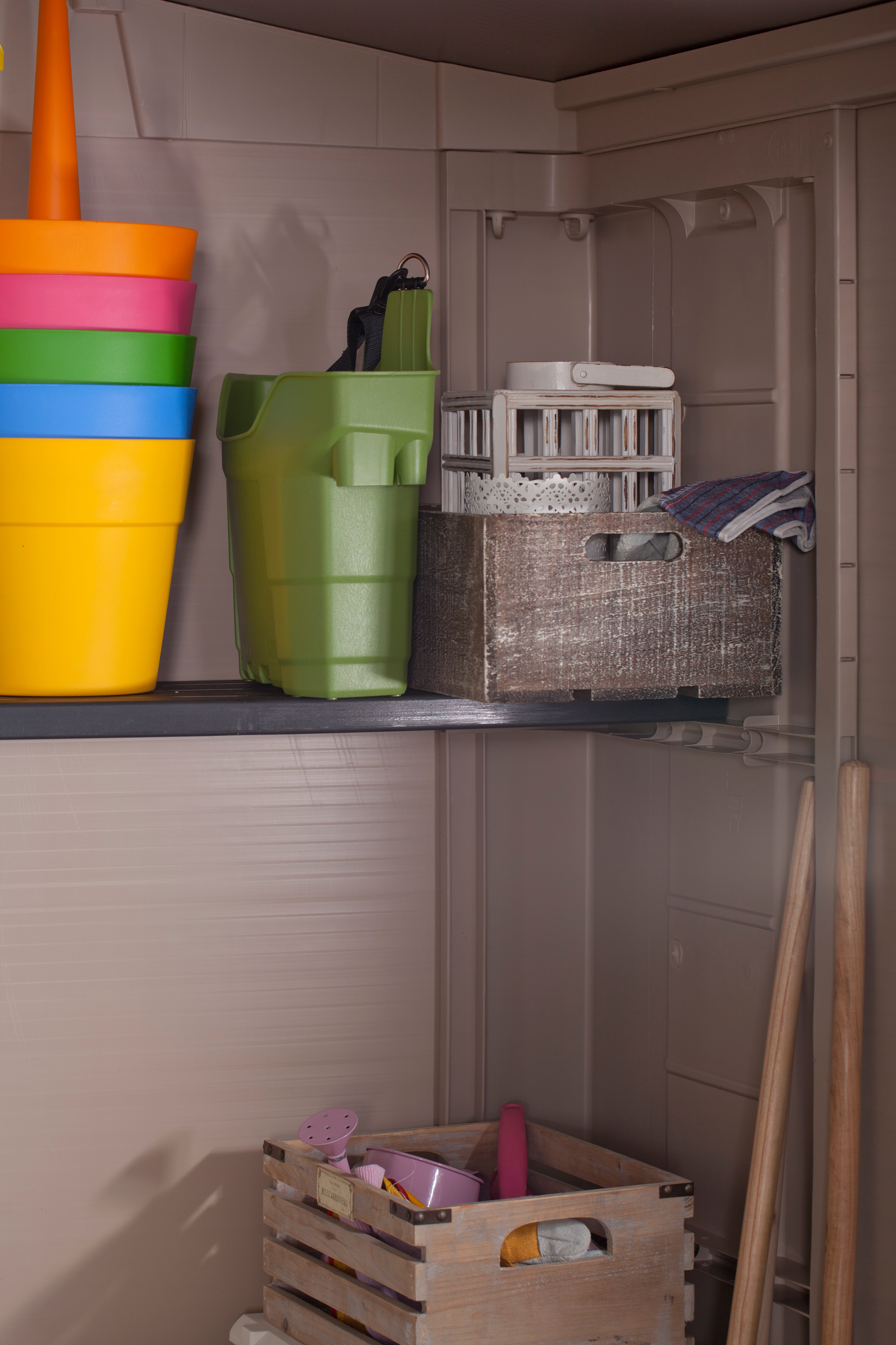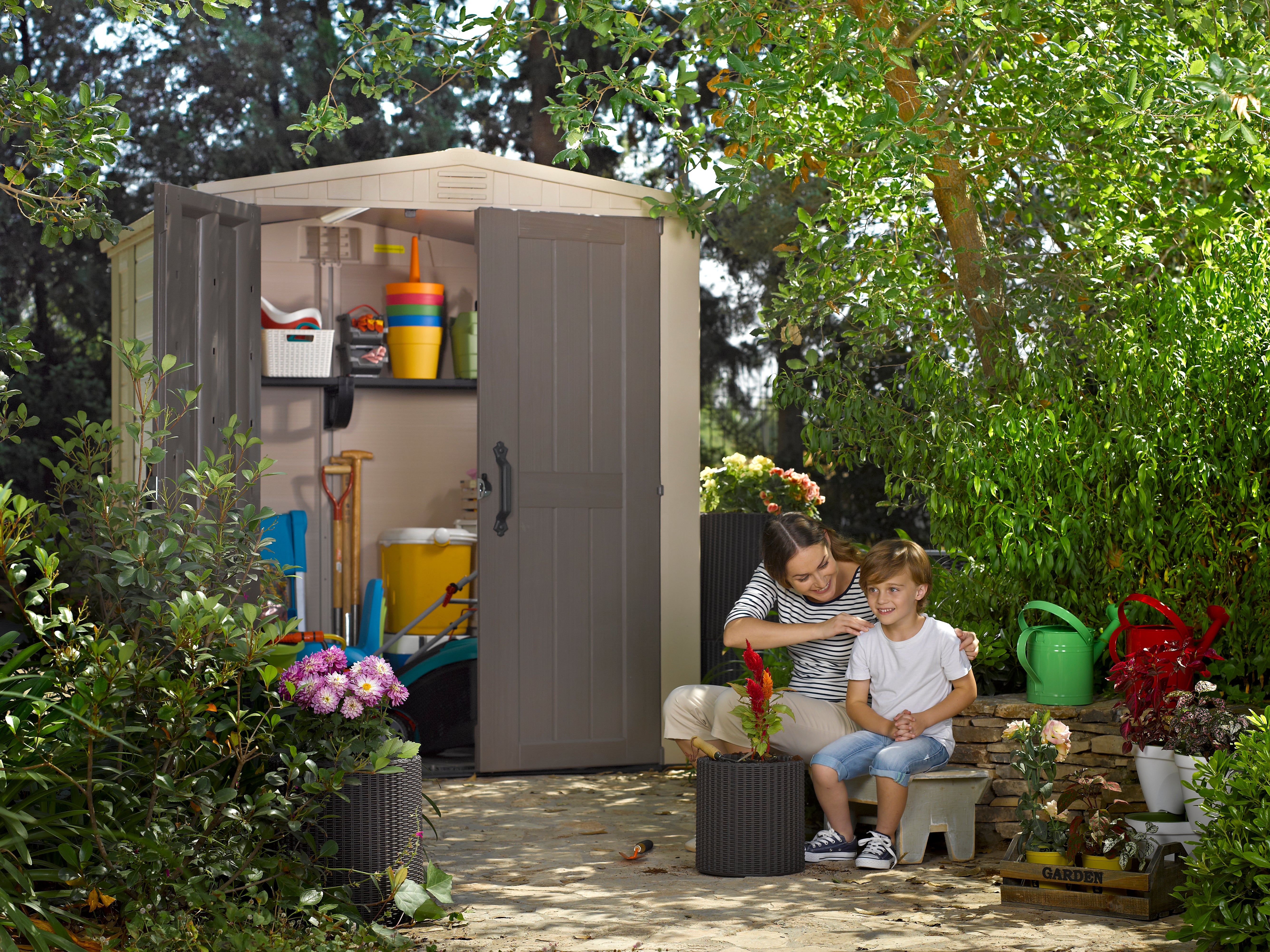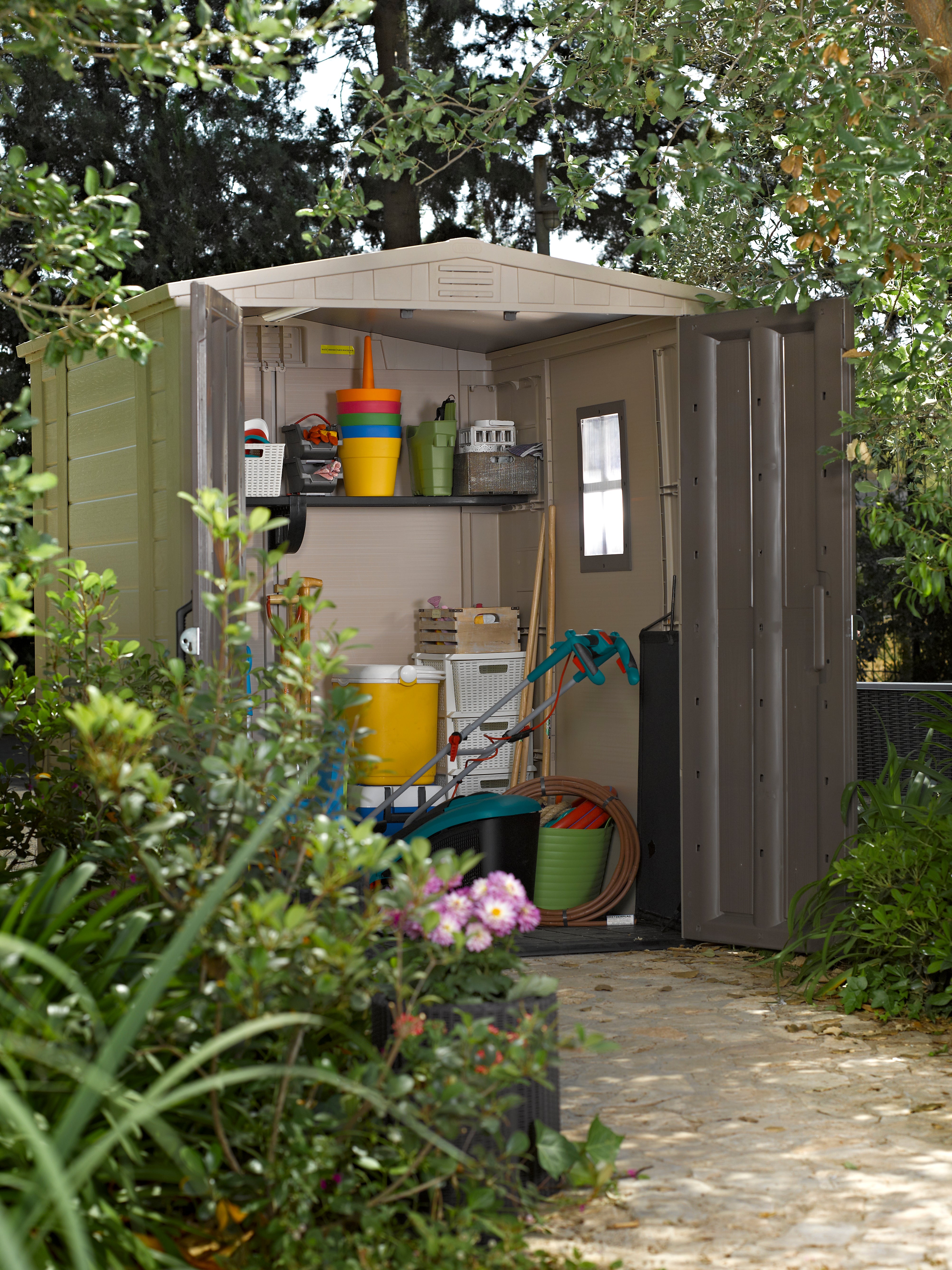 Perfectly suited to the storage of equipment, tools or toys, the Factor 6 x 6 boasts a durable, weather resistant construction and stylish wood look finish that is essentially maintenance free.