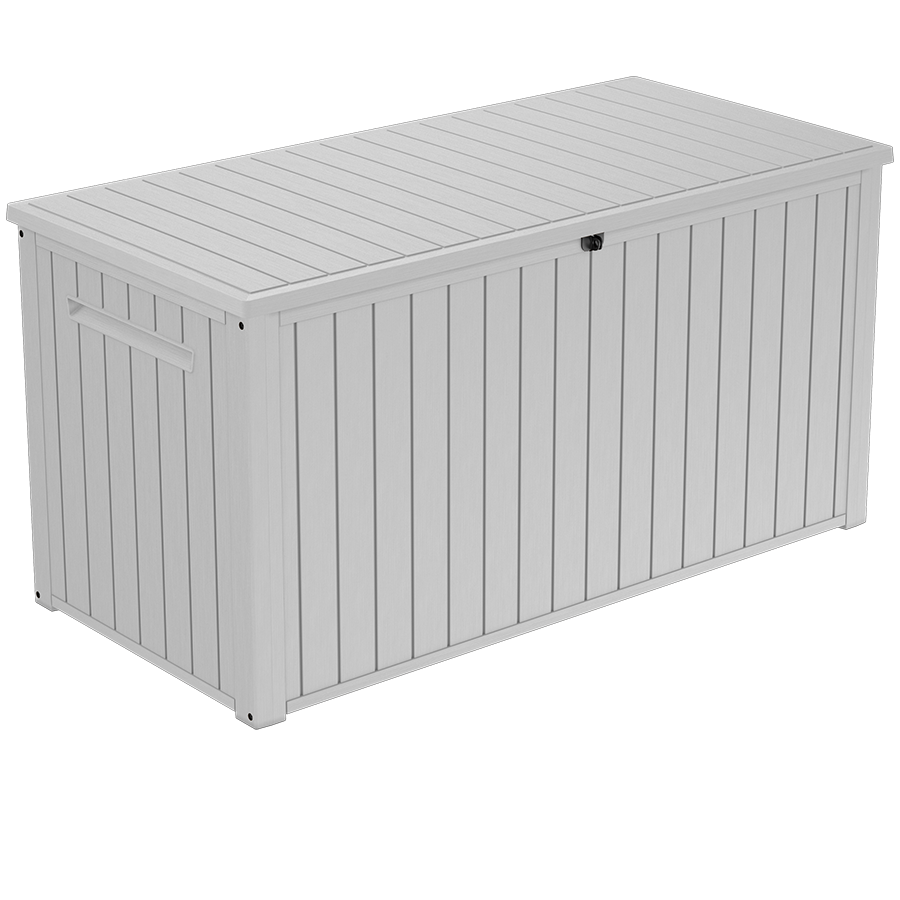 Gas struts make opening and closing the lid smooth and effortless, and built‑in side handles make it simple to move around your deck or patio. The lockable lid (lock not included) offers extra peace of mind, and easy assembly plus low‑maintenance materials mean this deck box is built to last through every season.