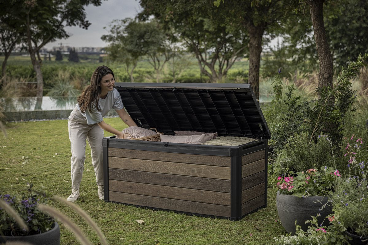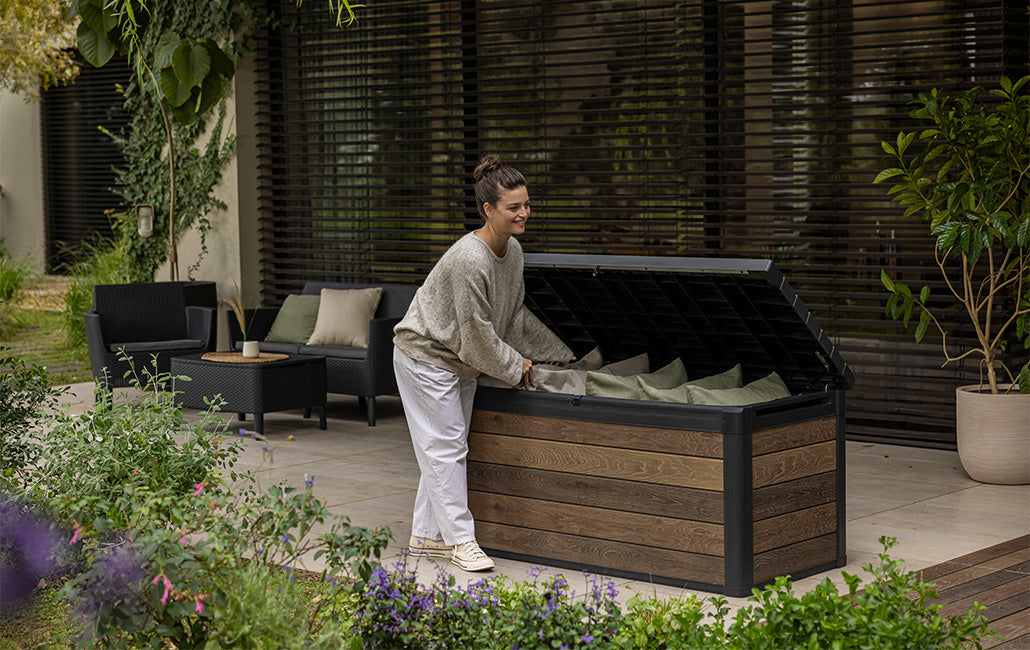 - 570L high-capacity storage for cushions, pool toys, and garden essentials