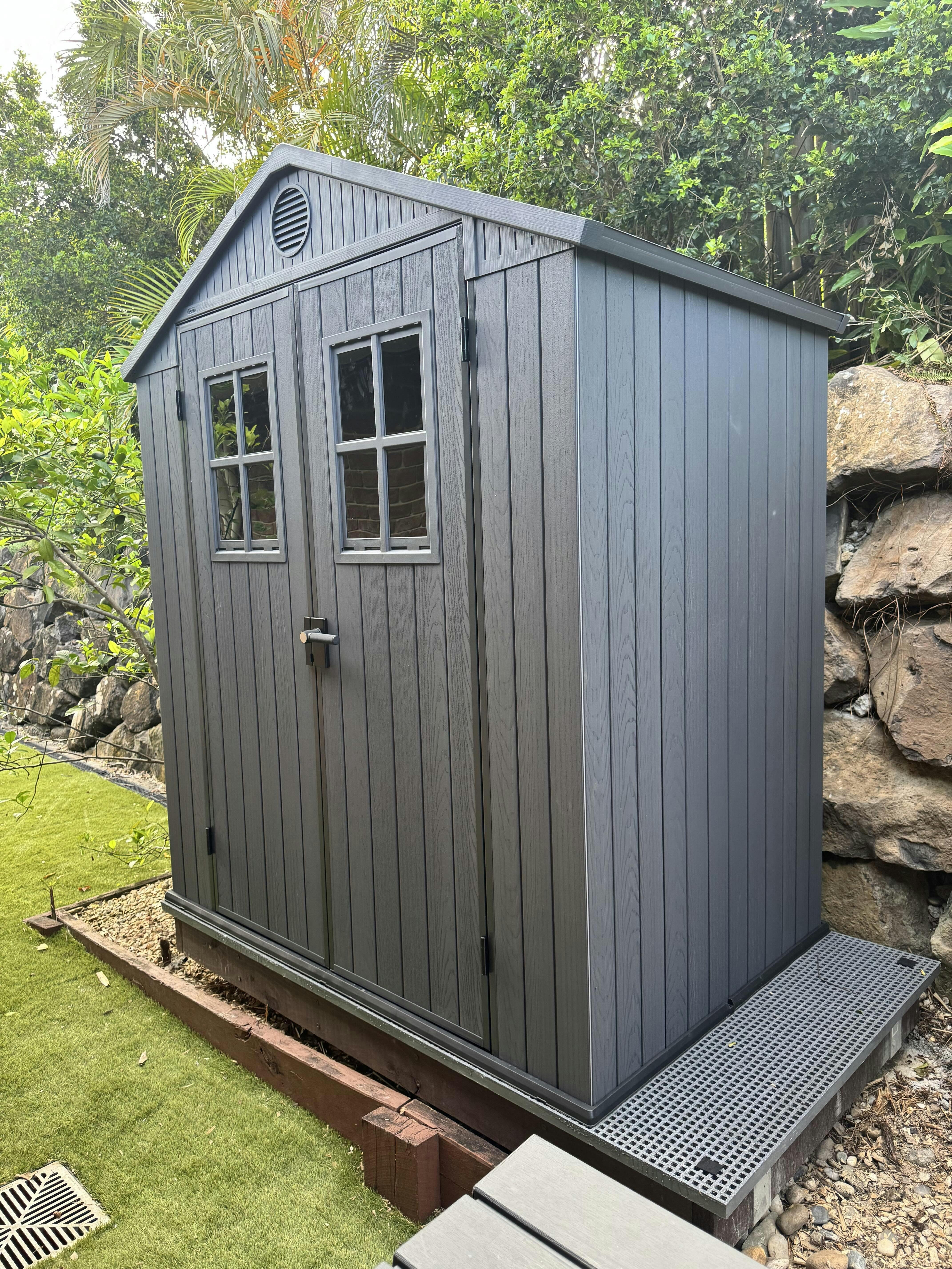 The evolutionary Darwin composite shed is the perfect design if you desire the look of a wooden shed but with all the benefits of resin. The Darwin 6 X 4 is the ultimate in patio and garden storage. Forget hoping something will fit, with double doors and an incredibly spacious interior, you know it will. Store your garden tools, gardening equipment, outdoor furniture and much more safely and securely with the added lockable hasp. The Darwin 6 X 4’s metal reinforced double walled tongue and groove construction is incredibly strong and rigid, and includes practical touches like a vent for air circulation to prevent moisture build up and a window and skylight for a well-lit interior.