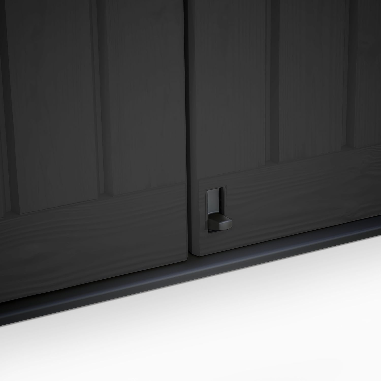 The Store It Out Max is a durable, fully weather resistant storage shed with sloped threshold for easy wheeled access. Features include a 1200lt capacity, easy to open gas strut assisted lid, lockable double doors, floor panel and bonus bin opening kit.