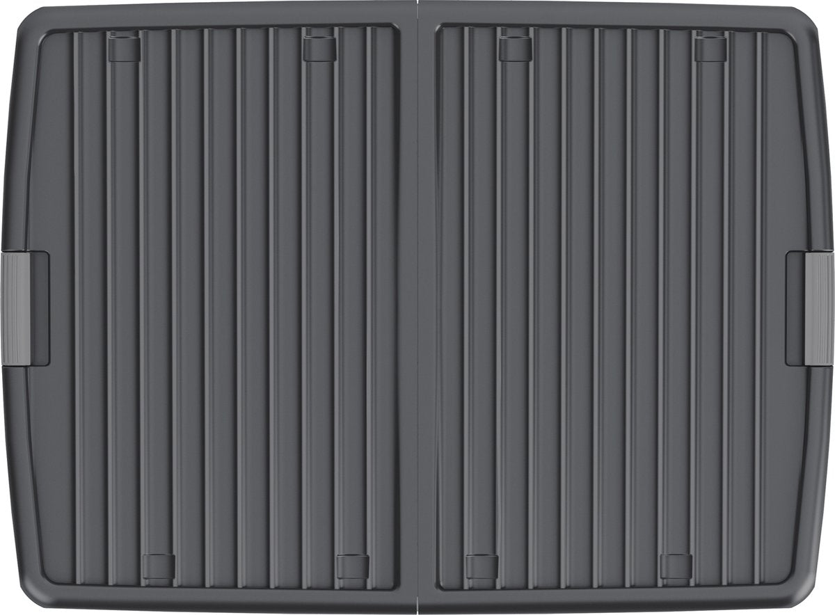 - To stack the boxes on top of each other, a recess for a wheel is pressed into the lid so that the box does not move. (See detailed picture)