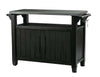 The BBQ Entertainment Unit is an all-in-one solution that allows you to host comfortably while storing up to 207L of items securely (298L total storage capacity) It’s made out of a strong, weather-resistant resin with an appealing wood-like texture and has a durable upper surface for preparation, serving and other hosting duties. Brushed stainless top and charcoal base. You can use this as a BBQ grill cart, outdoor bar, serving cart, and prep table. Put an end to looking for your condiments, grilling utensils, and meat for the grill and be the talk of the backyard barbeque. Entertain your party guests by cooking, serving, and pouring the drinks all from the Unity XL BBQ Unit from Keter.