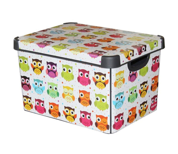 Stylishly compact, this owl themed storage container with in-mould labelled artwork boasts a removable lid (with extra corner protection) together with a rectangular design and easy grip cut handles for the secure stacking of multiple boxes.
