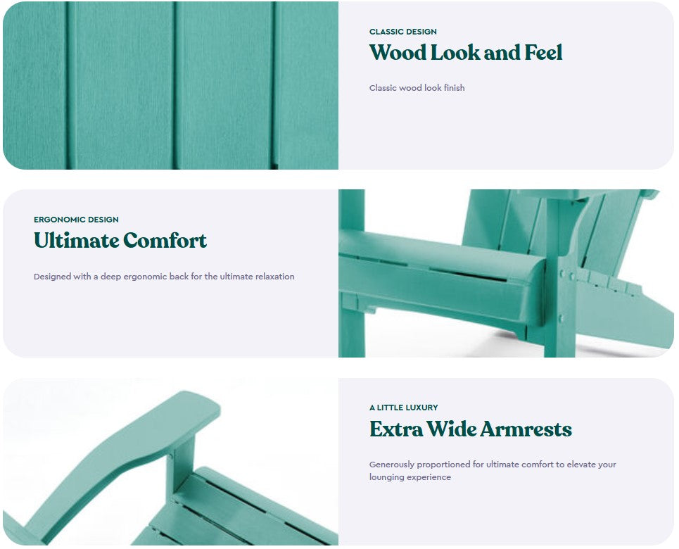 Experience the look and feel of wood with none of the maintenance worries. The Alpine Adirondack chair offers easy-living comfort and traditional styling your entire family will enjoy.