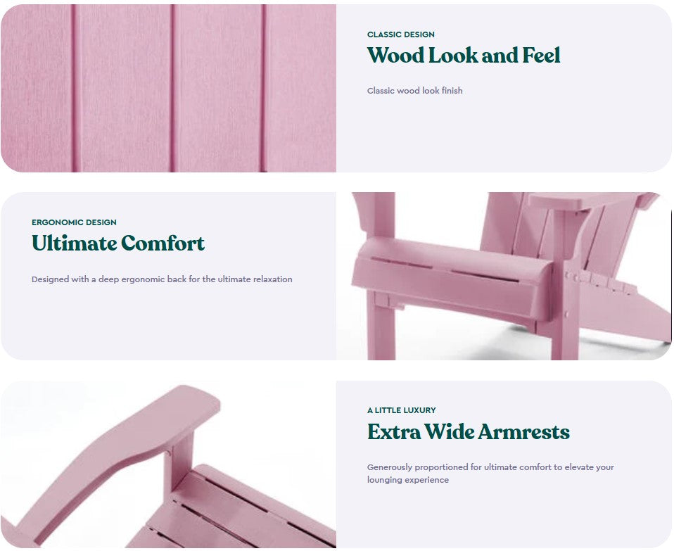 Experience the look and feel of wood with none of the maintenance worries. The Alpine Adirondack chair offers easy-living comfort and traditional styling your entire family will enjoy.