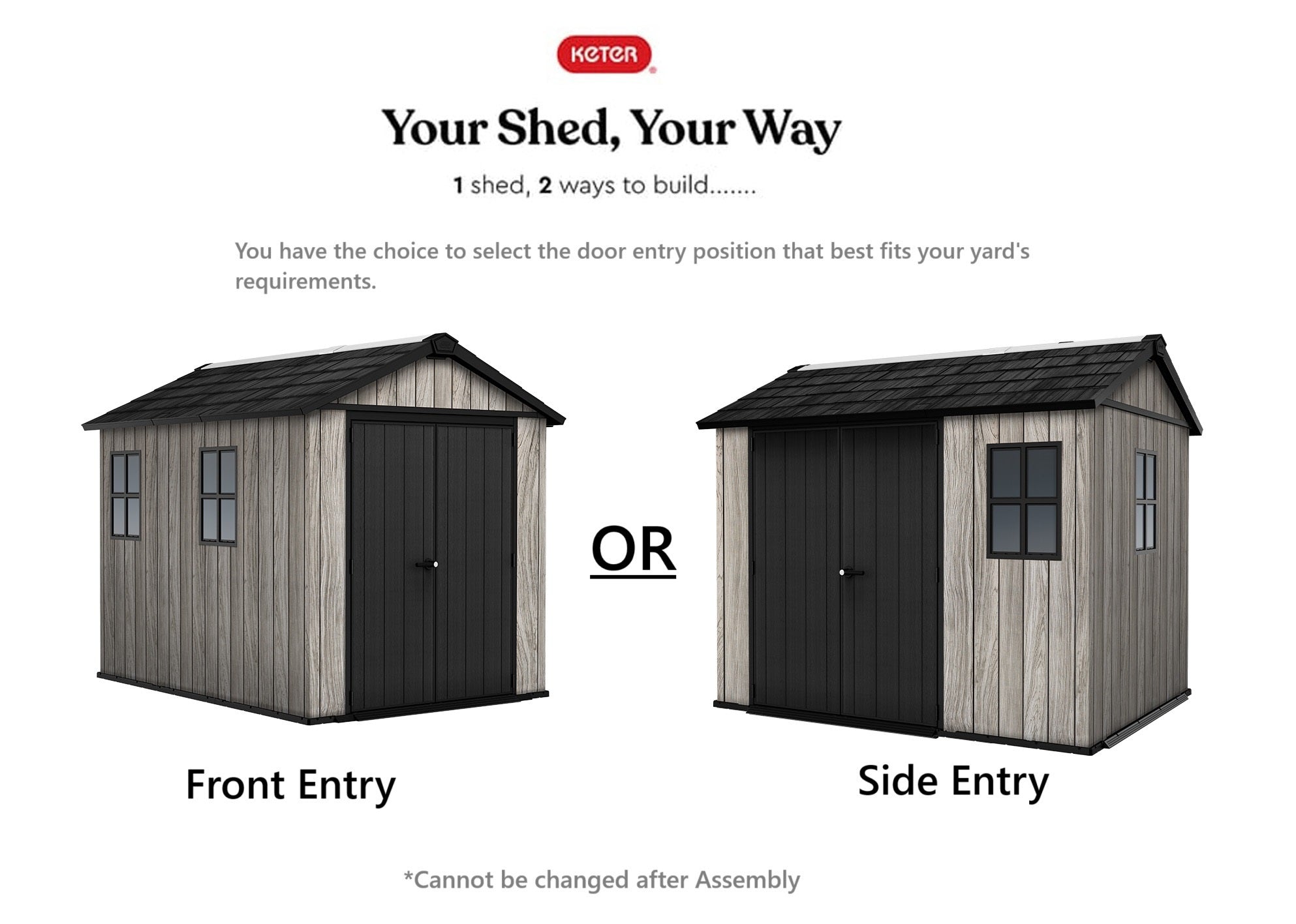 • Have the option to choose which way to position the door entry to best suit your yard's needs. - Cannot be changed after assembly