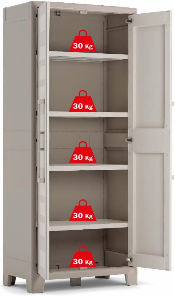 Are you looking for a spacious wardrobe to create a practical and organized space? The Tall Gulliver Cabinet is designed for those who demand quality and functionality. Perfect for any utility area—be it a laundry room, pantry, garage, or workshop—this cabinet is crafted from high-quality recycled plastic, making it resistant to moisture and UV rays. This means it’s an excellent choice for use as a pantry on your balcony or terrace.