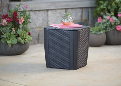 The Luzon Outdoor Storage Side Table is a versatile storage solution that can simultaneously complement any outdoor setting as either a footstool or extra seat.