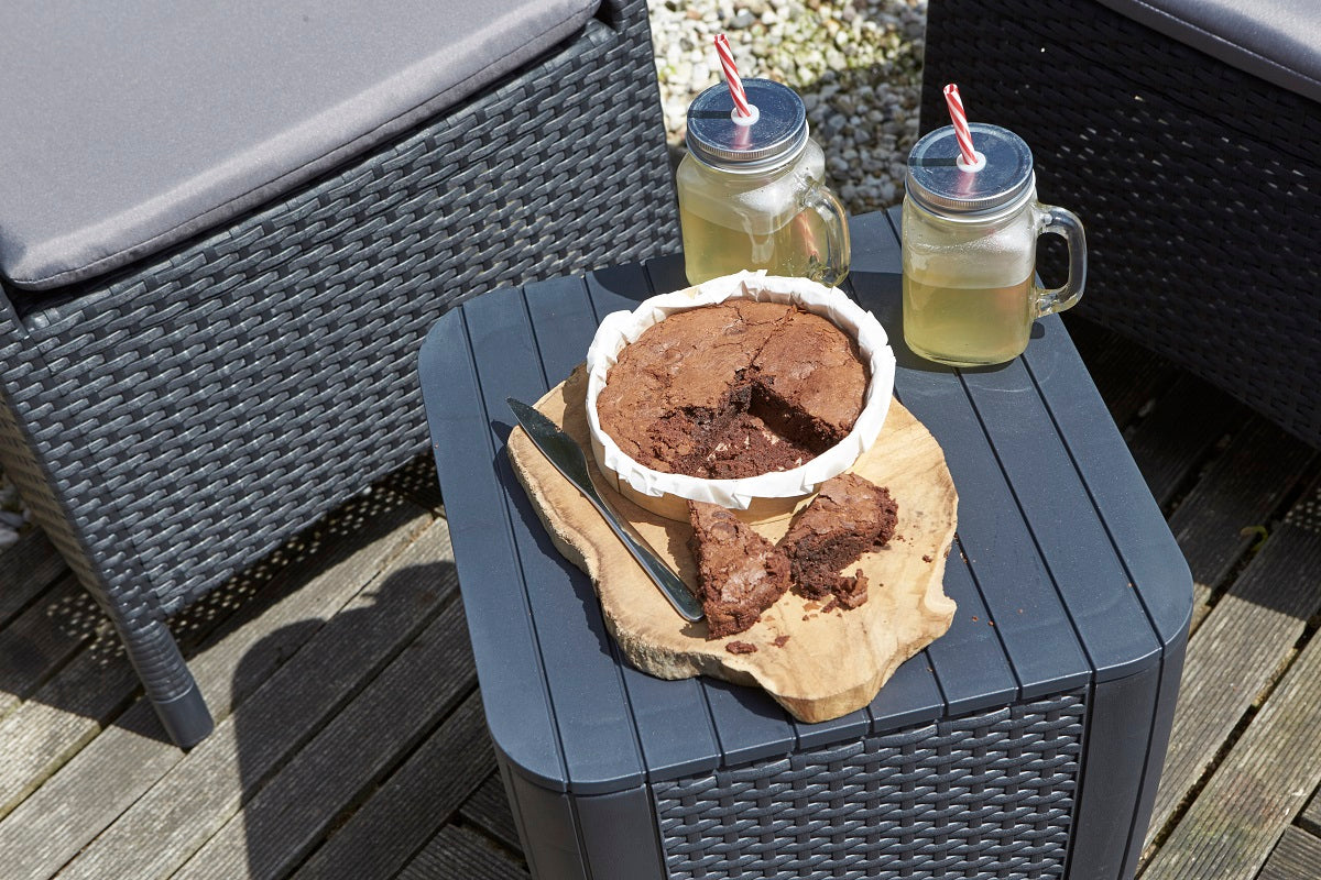 Rezolith finish table top, *Rezolith is the new durable wood look material from Keter. Specifically designed for outdoor use, it is long lasting, weatherproof, UV protected and easy to clean. It has been constructed from a durable resin that boasts a stylish flat wicker finish on the sides in addition to a removable flat panel look table top.