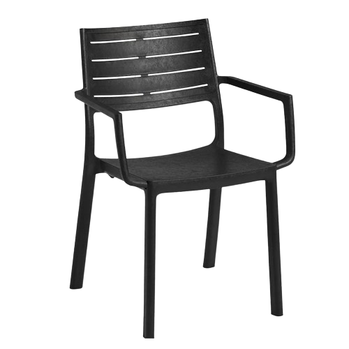 Elevate your outdoor dining space with the casual chic style of the Metaline Chair. Featuring a sleek, modern design with a striking metal-effect finish, this chair adds a contemporary, industrial touch to any setting. Made from durable resin, it offers the look of cast iron without the weight or risk of rust, providing the perfect blend of style and functionality. Thanks to its weather-resistant properties, the Metaline Chair requires no maintenance and will withstand the elements with ease. The comfortable horizontal slats on the seat enhance its minimalist appeal, while the armrests offer added comfort. Easy to clean with just a damp cloth, it's the ideal low-maintenance solution for any outdoor area.