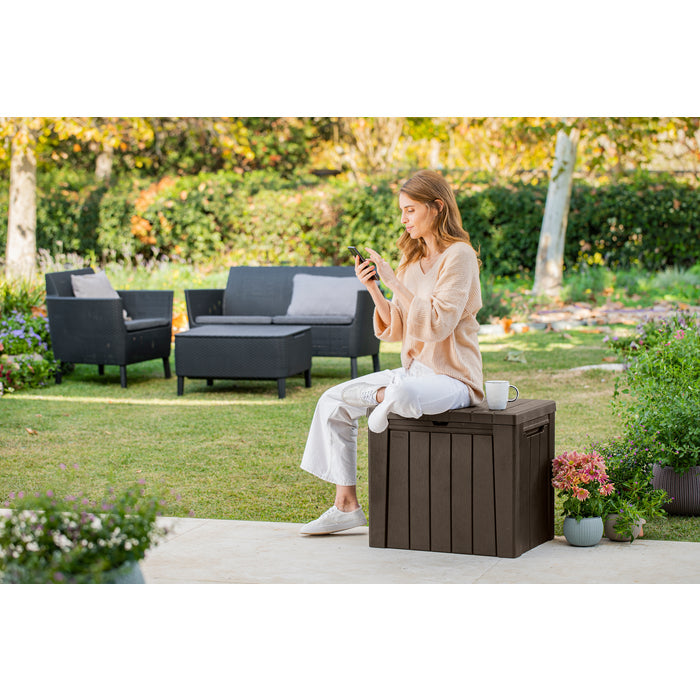 The square design, 113L capacity and natural brown wood finish make this storage box practical and beautiful, making it suitable for almost any style of outdoor space. This versatile box can also be used as patio furniture, with an extra seat for summer visitors.