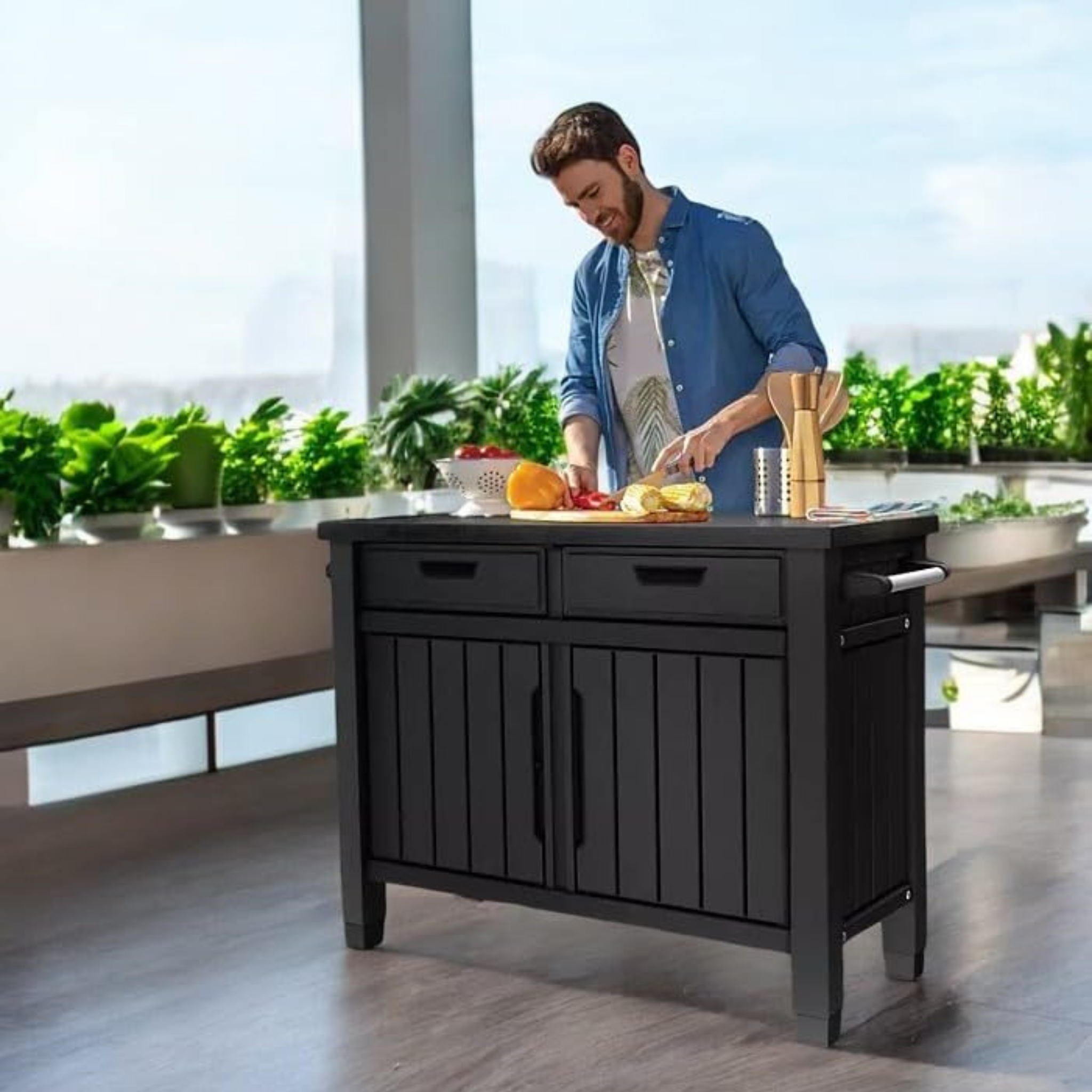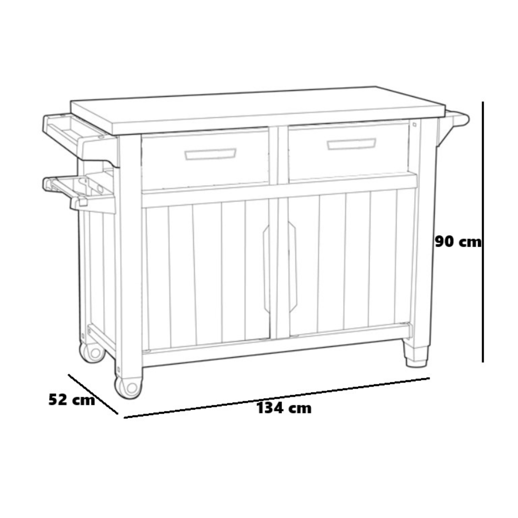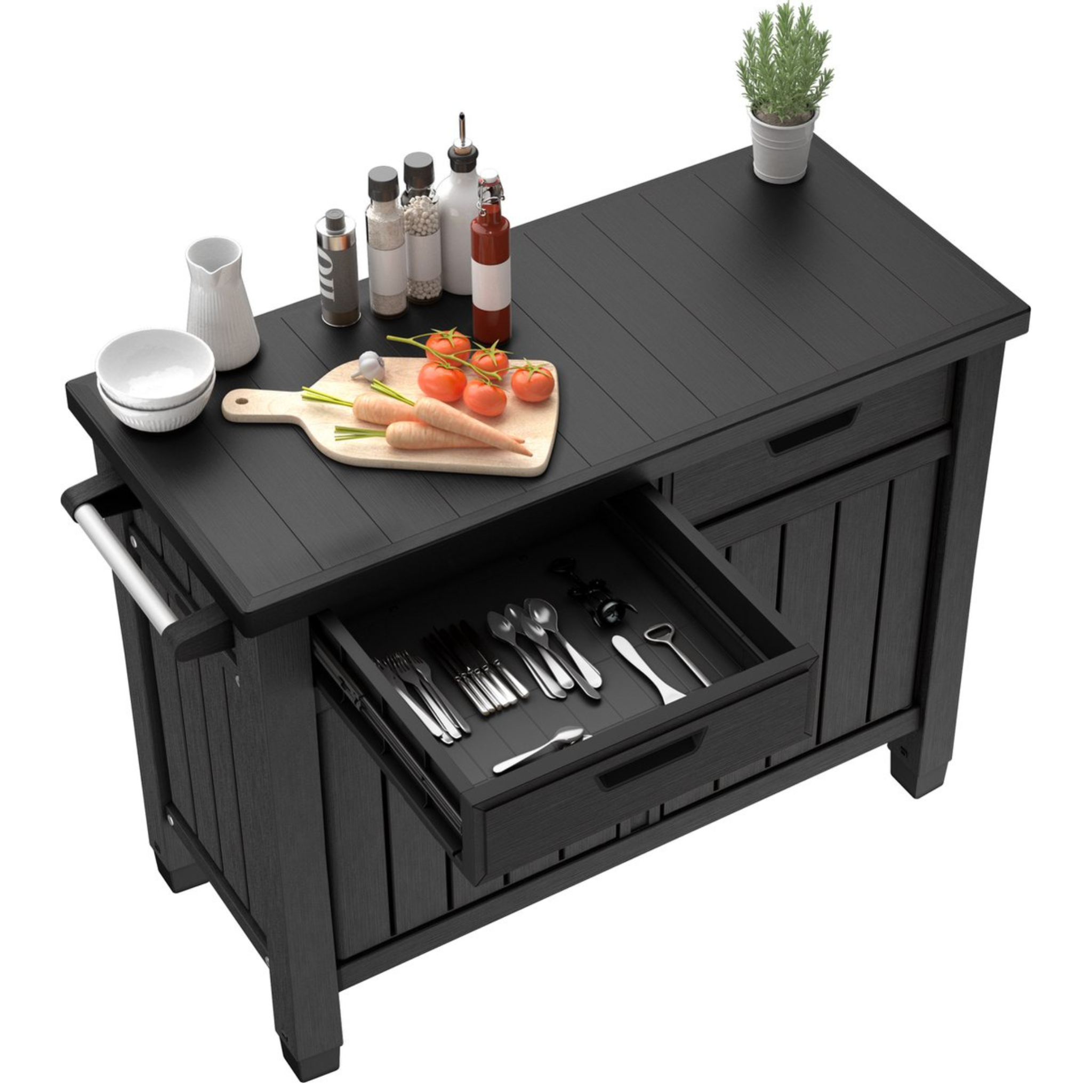 The Keter Unity Outdoor Kitchen Buffet Storage is an all-in-one solution that allows you to host outdoor parties and barbecues in comfort and style. We all love garden parties and family barbecues, but hosting can often be stressful with the constant running back and forth to the kitchen. Maybe it's you that runs back or you send an able helper, but it all detracts from the enjoyment. At almost 1.3m, the Unity Buffet provides ample space for you to host stress free without having to make those kitchen trips. You simply load up 207L of storage (298L total storage capacity) with the essentials and you stay with your friends and family enjoying the garden. The durable upper surface is made from UV and weather resistant resin and is great for food preparation, serving and easy for cleaning up and keeping the surfaces hygienic.