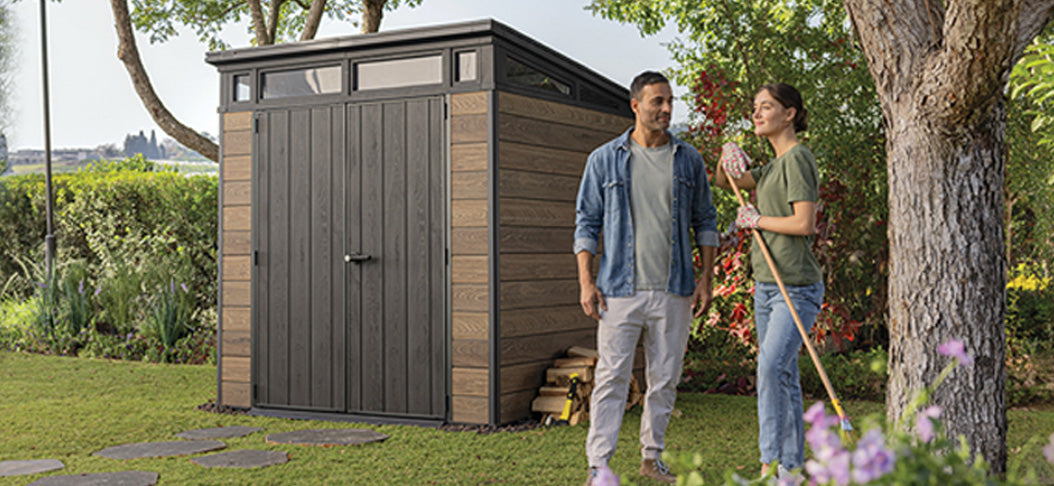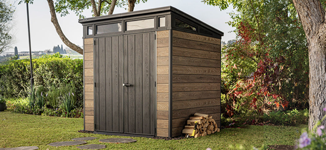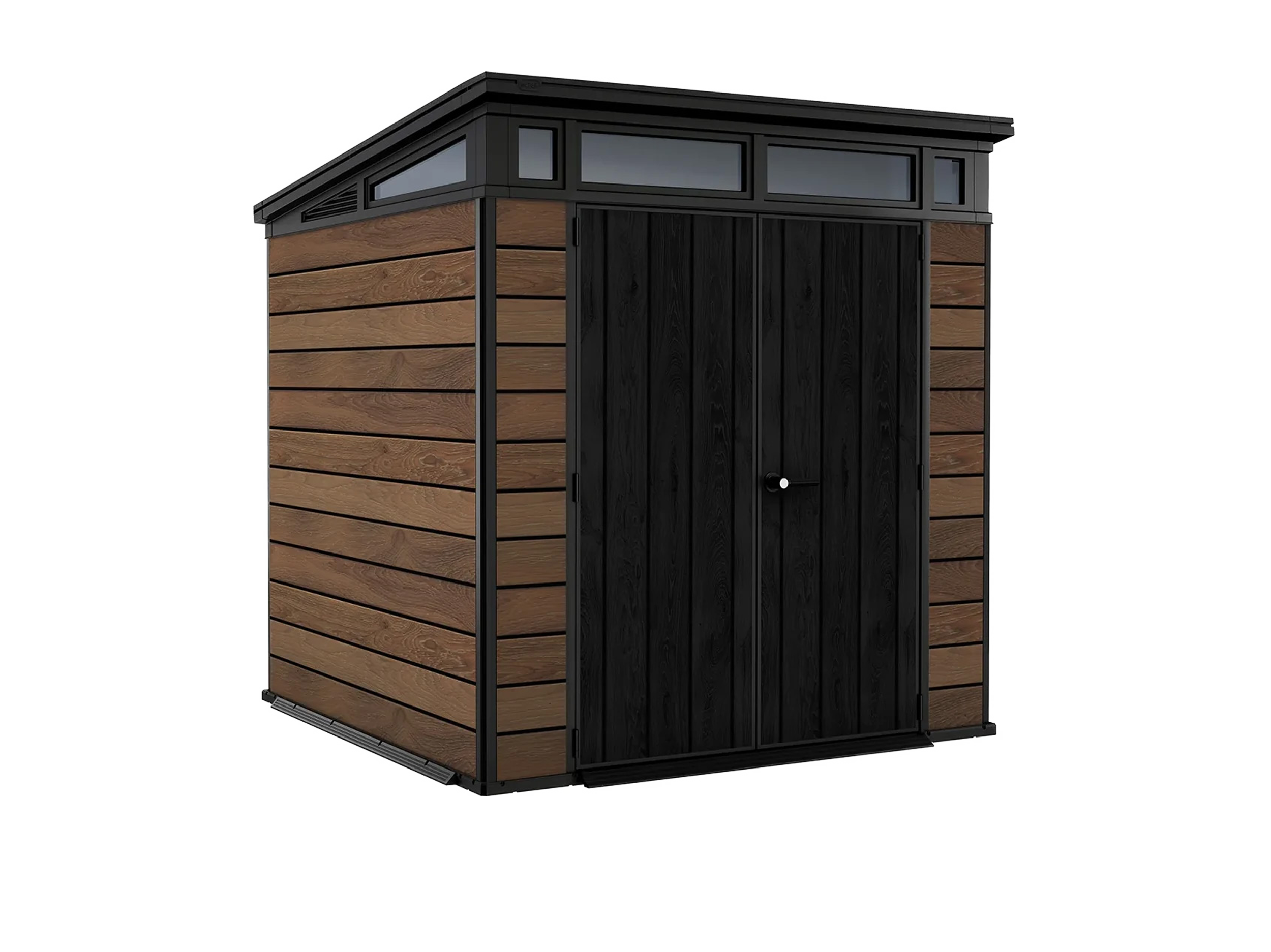 The Pent 7x7 storage shed from Keter’s Signature Collection line adds durability, elegance, and style to premium outdoor storage. Its light, bright wooden hues can transform any outdoor space to a sophisticated look beyond the ordinary.